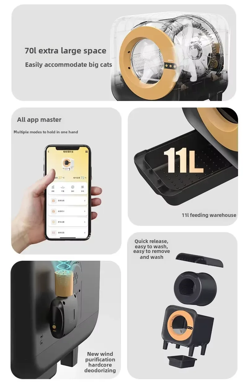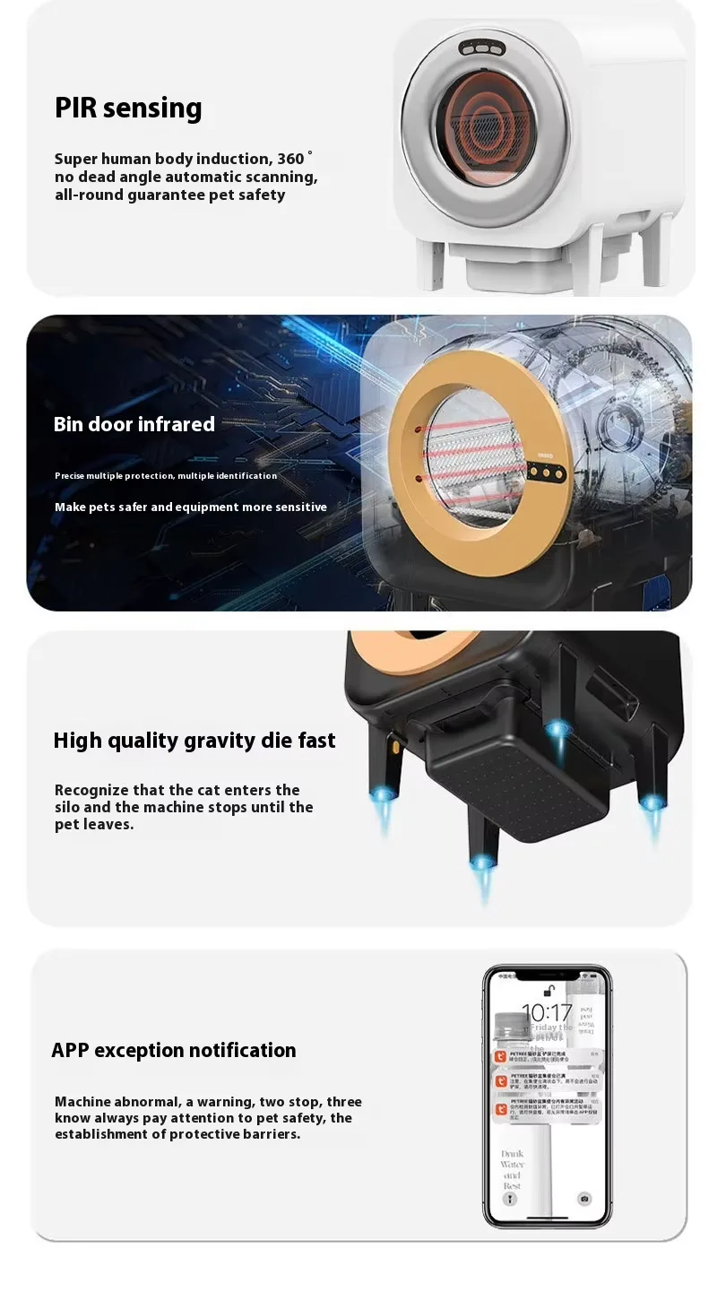 Protección de seguridad múltiple, múltiples sensores dentro del equipo trabajan juntos para monitorear el estado del equipo en todo momento, brindando a los gatos una seguridad más completa.